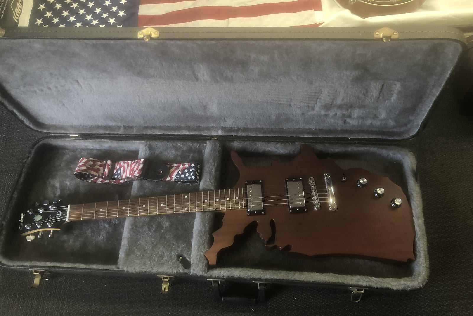 USA flag strap and hard case included.
