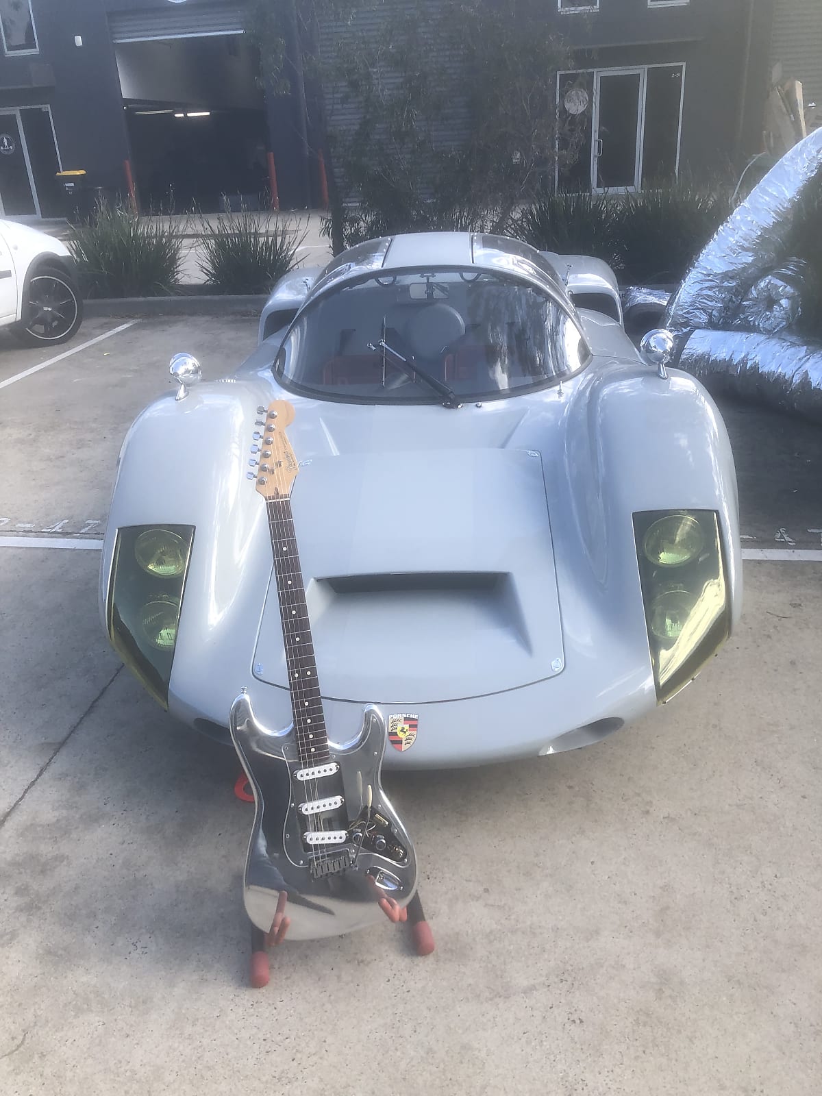 For those interested, the Strat is pictured with a hand built Porsche 906 replica made by the sons of this guitars previous owner. They also do 908 and 917 (Le Mans Steve McQueen).